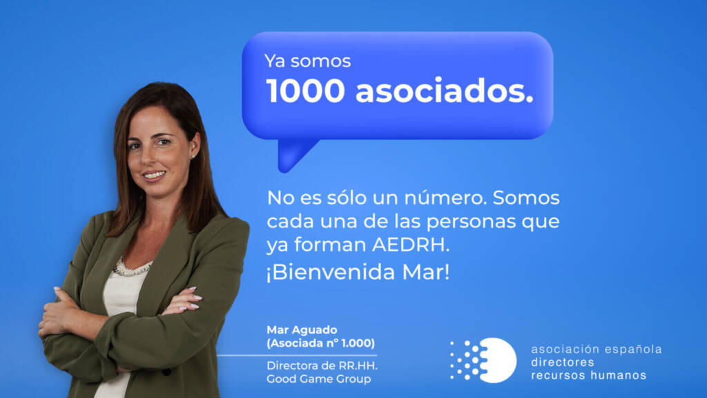 La incorporación de Mar Aguado a la Asociación Española de Directores de Recursos Humanos es un hito relevante en nuestra historia ya que, tras 11 años creciendo juntos, hemos llegado a ser 1.000 asociados. Queremos darle una especial bienvenida y lo celebramos con todos vosotros ya que cada vez somos más los que impulsamos la función de Recursos Humanos en todo tipo de organizaciones.
