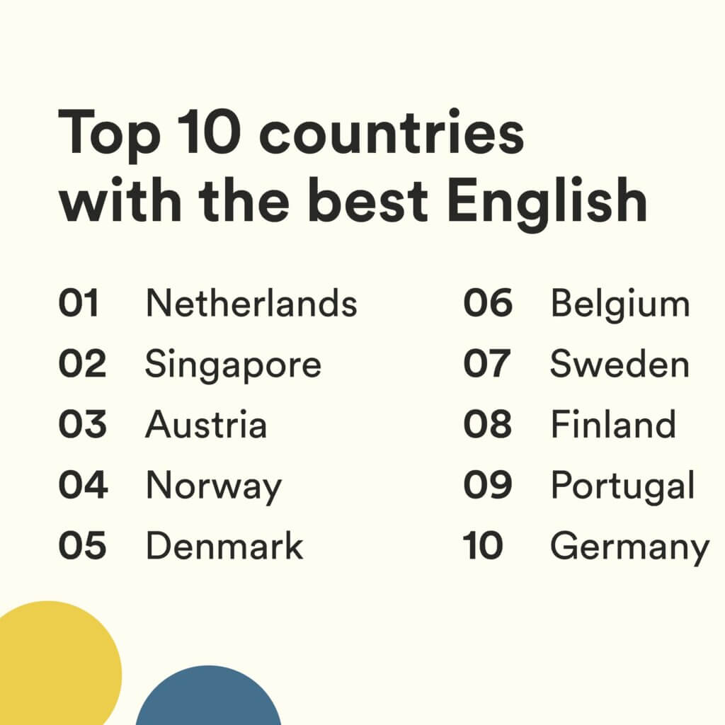 EF Education First (EF), patrocinador Gold de la Asociación Española de Directores de Recursos Humanos, ha publicado la edición de 2022 de su Índice de Dominio del Inglés (EF EPI), analizando datos de 2,1 millones de hablantes no nativos de inglés en 111 países y regiones. Los Países Bajos conservaron el primer lugar, mientras que Singapur subió al segundo puesto, volviendo a colarse entre los tres primeros.