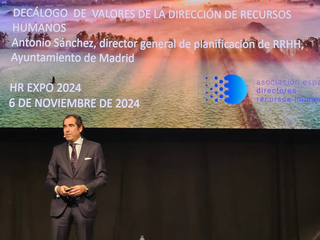 Otro de los momentos destacados fue la presentación del “Decálogo de Valores de la Dirección de RR.HH.”, a cargo de Antonio Sánchez Díaz, Director General de Planificación de RR.HH. en el Ayuntamiento de Madrid y miembro de la Junta Directiva de AEDRH. En su intervención, Antonio destacó principios fundamentales para la profesión, como la pasión por las personas, la cultura del servicio, mejorar la sociedad, constructores de un puzle y la capacidad de innovar y adaptarse constantemente. Estos valores, explicó, son esenciales para construir una dirección de Recursos Humanos sólida, que actúe como “labrador del talento” y motor de transformación empresarial.