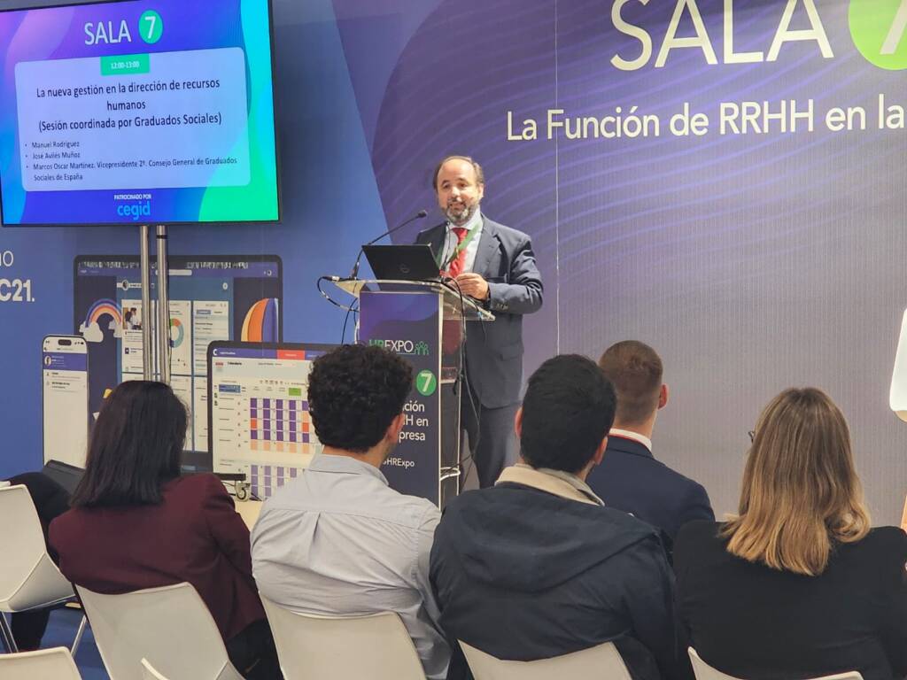 La participación de AEDRH en HR EXPO 2024 incluyó también una sesión donde José Avilés, Director de Personas en Rhenus Warehousing Solutions y miembro de la Junta Directiva AEDRH, abordó tres grandes retos actuales para los RR.HH.: el absentismo laboral, la retención del talento y la transformación del rol directivo. Se discutieron estrategias para reducir los índices de absentismo, priorizar el bienestar de los empleados y adaptar la función directiva a las demandas actuales, como la personalización de la experiencia del empleado y la implementación de encuestas de satisfacción.