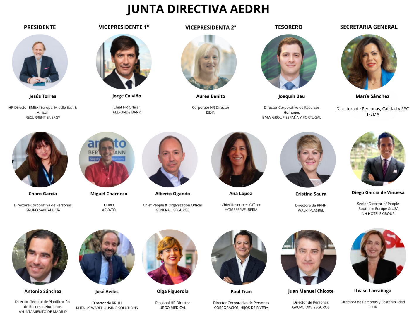 Con este nombramiento, la Junta Directiva de AEDRH queda formada de la siguiente forma: