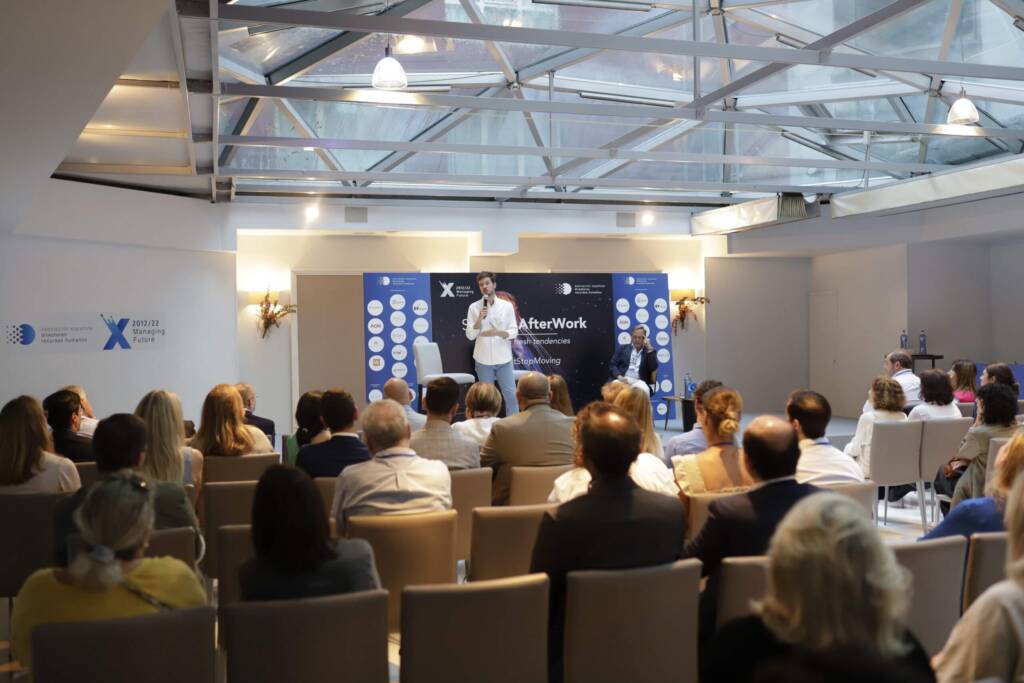 Antes de dar comienzo a la sesión de networking, tuvo lugar la intervención de Pablo González Ruiz de la Torre, CEO de TRIVU. Con tan solo 28 años, Pablo tiene como objetivo poner en valor todo el talento que hay en España, especialmente el talento más joven. En esta línea, anunció que el 23 de septiembre tendrá lugar en el Casino de Madrid una nueva edición de TALEÑT, un evento organizado por TRIVU en el que se tratará de elevar los debates y preocupaciones ya conocidas por los asociados de la AEDRH al resto de la sociedad, incluyendo a dirigentes políticos, presidentes de grandes corporaciones y demás agentes del cambio.